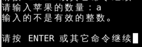 try: apple_quantity = int(input("请输入苹果的数量:")) banana_quantity = int(input("请输入香蕉的数量:")) total = apple_quantity + banana_quantity print(f"苹果和香蕉的总数为:{total}") except ValueError: print("输入的不是有效的整数。")