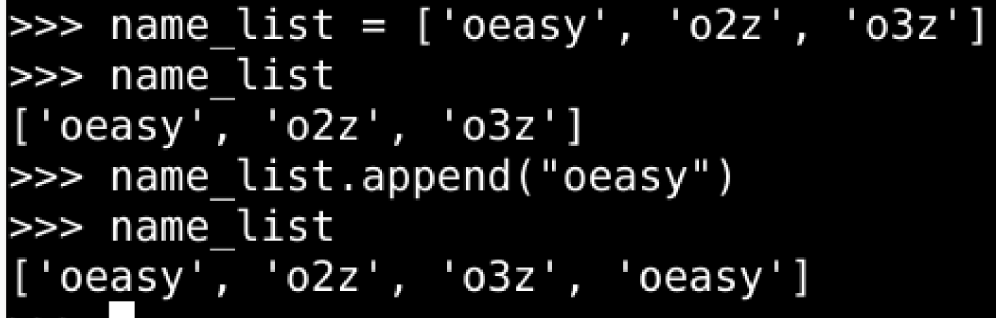 同样元素 name_list = ['oeasy', 'o2z', 'o3z', 'o4z']