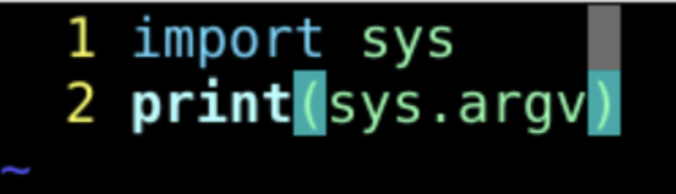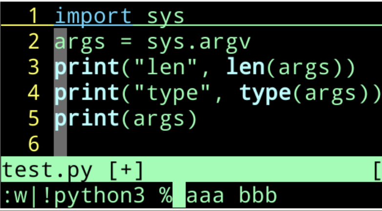 import sys args = sys.argv print("len", len(args)) print("type", type(args)) print(args)