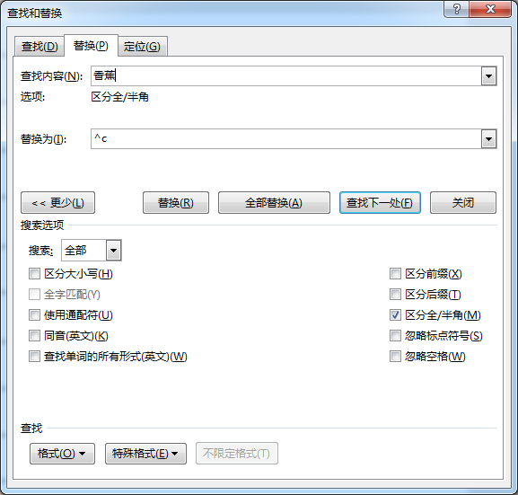 4.在“替换为”后面的输入框中单击一次,然后单击“特殊格式”按钮,单击“剪贴板内容”。