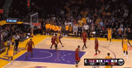 另外,在得分把握上,扣篮和擦板是命中率无疑最高的,扣篮得分次数达1000+,不愧为小飞侠,生涯跳投总命中率接近40%。若是跳投手感不佳,那就只能Corssover突进内线,然后接上一个飞扣了,画风如下: