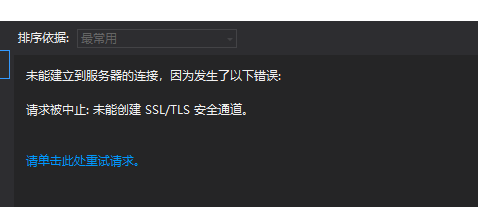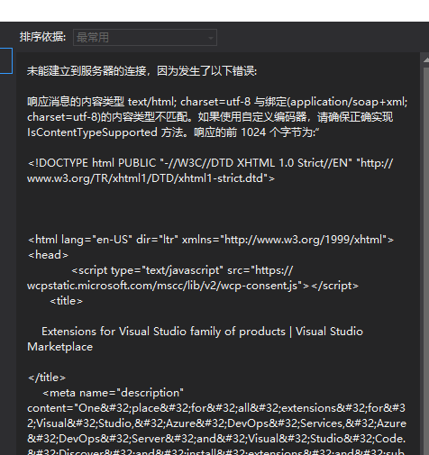 上网查询,在以下地址查到有人遇到同样问题:关于连接:Visual Studio 2012“扩展和更新”“无法连接到远程服务器” | 码农家园