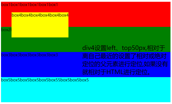 通常设置父元素box1相对定位,position:relative; 设置子元素box2绝对定位,position:absolute;