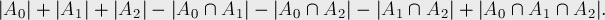 计算几个集合并集的大小,计算单个元素的集合大小减去两个集合的相交的部分,加上三个集合相交的部分