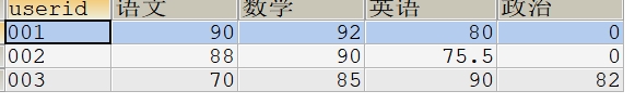 INSERT INTO tb_score1(userid,cn_score,math_score,en_score,po_score) VALUES ('001',90,92,80,0);