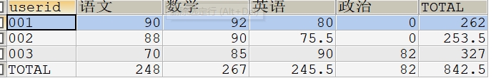 SELECT 'TOTAL',SUM(IF(`subject`='语文',score,0)) AS 语文,