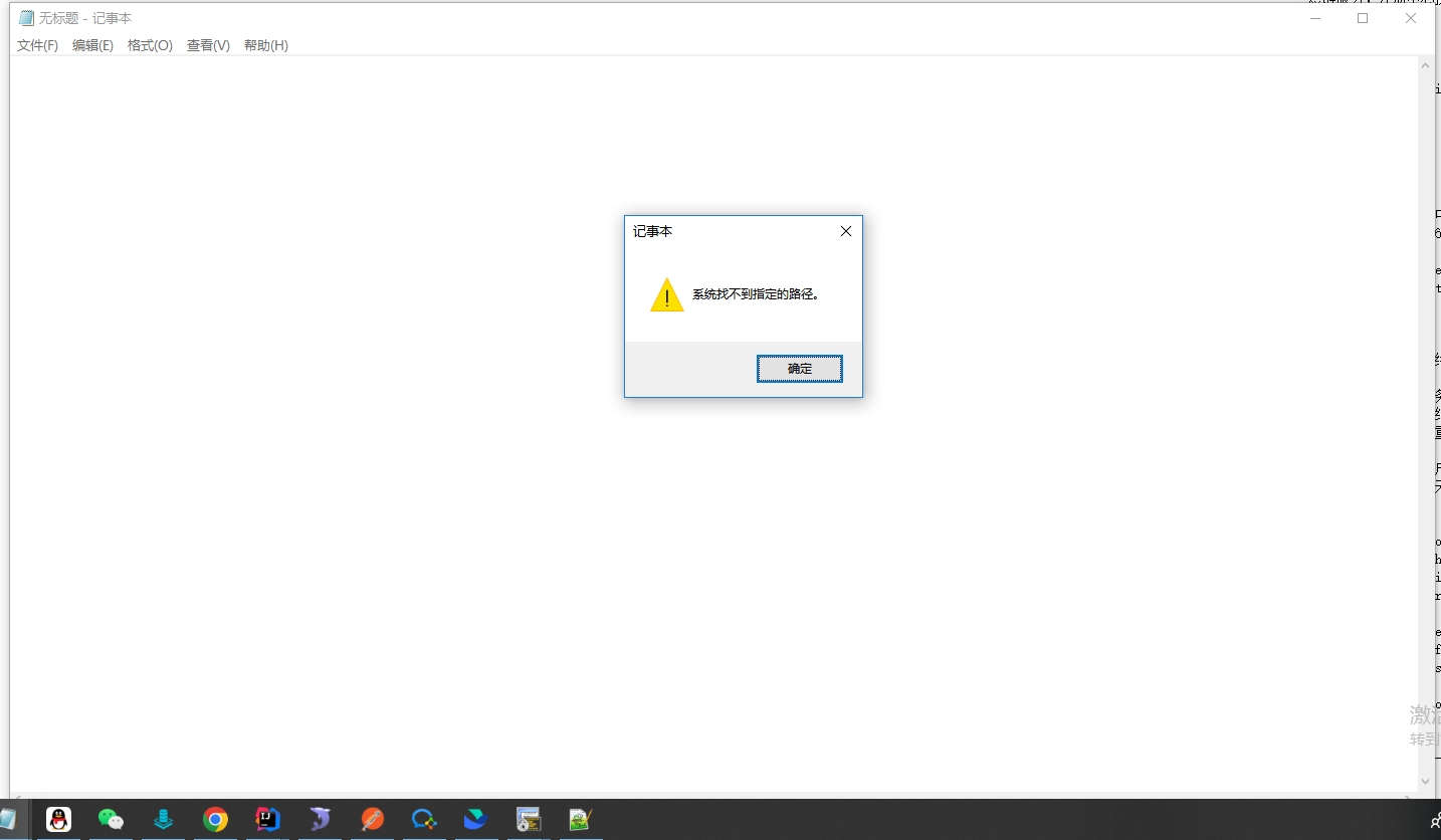 打开不了的txt文件,右键,打开方式选择,记事本。报错如下:系统找不到指定的路径