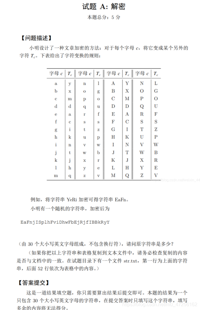 本题的结果为一个只包含 30 个大小写英文字母的字符串,在提交答案时只填写这个字符串,填写多余的内容将无法得分。