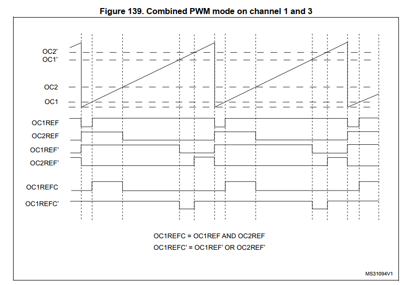 COmbined PWM2 的输出OC2REFC为 OC1REF 和OC2REF的与操作,如下图1所示: