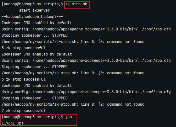 [hadoop@hadoop5 my-scripts]$ zk-stop.sh