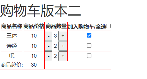 <h1>购物车版本一</h1>