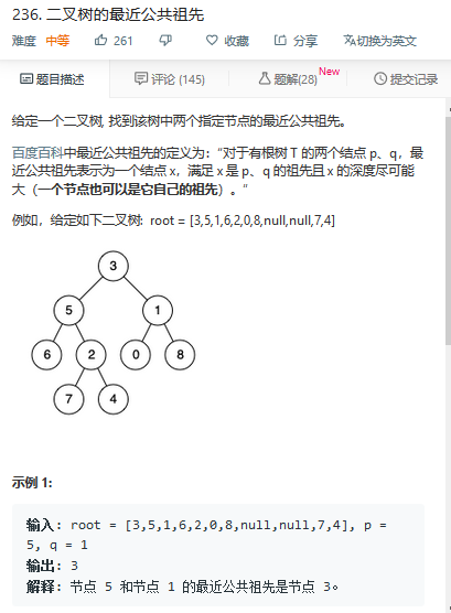 class Solution: def lowestCommonAncestor(self, root: 'TreeNode', p: 'TreeNode', q: 'TreeNode') -> 'TreeNode': dic={root:None} def bfs(node): if node: if node.left:dic[node.left]=node if node.right:dic[node.right]=node bfs(node.left) bfs(node.right) bfs(root) l1,l2=p,q while(l1!=l2): l1=dic.get(l1) if l1 else q l2=dic.get(l2) if l2 else p return l1