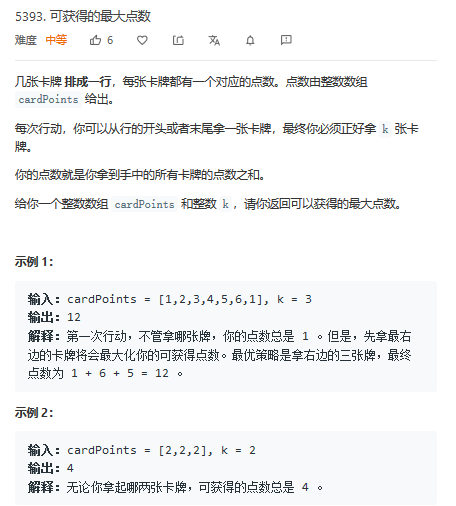 leetcode-5393-可获得的最大点数