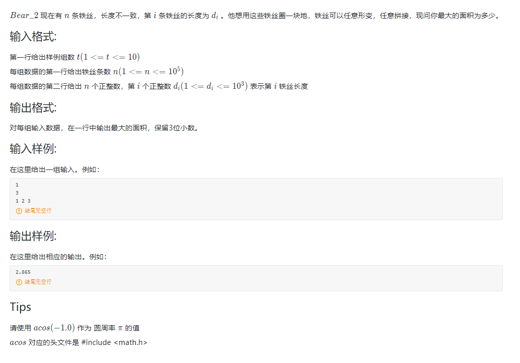 当初我自己做这道题的时候,想都没想就觉得一定是在围成圆时面积最大何况题面还提示了你要用圆周率,然后就理所当然地 \(AC\) 了;但在今年的新生考核中,却发现很多新生都倒在了这一题,在和队友们商量着写题解的事情时我突然意识到这个结论我完全不会证,和队友们商量了一下发现大伙也都不会一个能打的都没有,然后就有了想证明一下这个结论的想法,于是便有了本文。