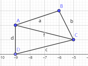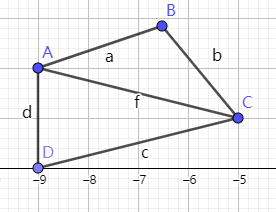 由引理3可知,面积最大的四边形一定是个菱形,而对于任意的菱形 \(ABCD\),连接对角线 \(AC\),把菱形分为 \(ABC\) 和 \(ADC\) 两个三角形,有:$$\displaystyle S_{ABCD}=S_{ABC}+S_{ADC}=\frac 12ab\sin B+\frac 12cd\sin D=\frac 12ab(\sin B+\sin D)$$显然当 \(\sin B=\sin D=1\),即 \(B=D=90°\) 时取到最大值,此时 \(ABCD\) 是一个正四边形,因此,命题4为真。
