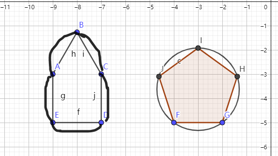 同样地,由引理3可知,面积最大的五边形的五条边一定相等,但五条边相等的五边形一定是正五边形吗?显然不一定: