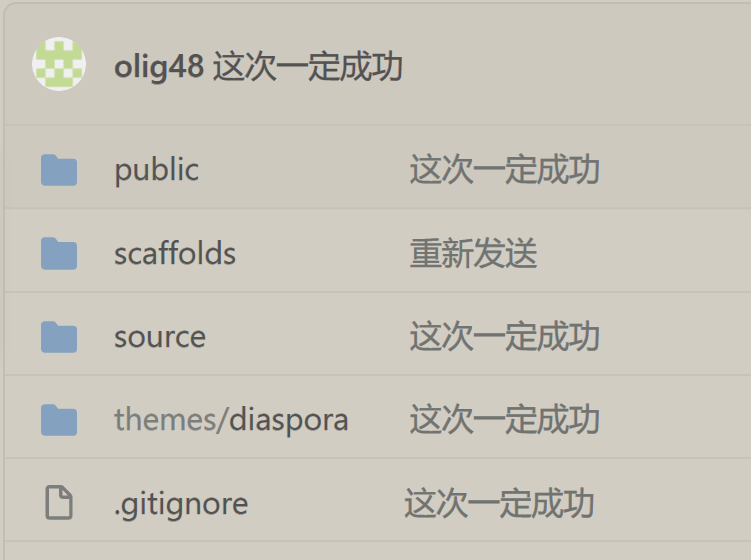 创建一个备份博客的仓库 blog_backup,将整个博客文件夹都提交上去(有的教程是在原博客仓库再创建一个分支,这种方法在对 git 不熟悉的情况下,容易把整个仓库搞废,所以不推荐)