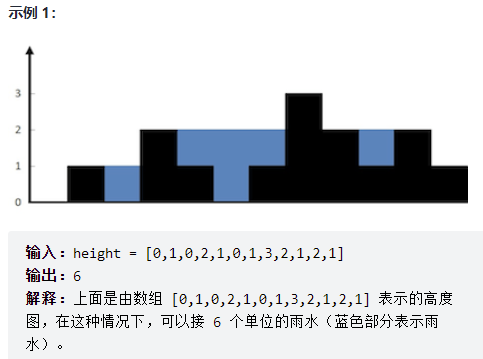 给定 n 个非负整数表示每个宽度为 1 的柱子的高度图,计算按此排列的柱子,下雨之后能接多少雨水。
