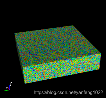 上述基于vtkHexahedron网格的三维模型显示需要显式地定义每个vtkHexahedron网格,然后建立vtkUnstructuredGrid,属于非结构化网格,计算量大。这个实例采用了vtkStructuredGrid的格式,不用显式地定义每个网格,只需要定义每个节点的空间坐标就行,计算量小,显示速度快,同时还以vtkAxesActor方式添加了XYZ方向的坐标轴。采用java的具体代码如下,其中coordXYZGrid是eclipse网格种每个节点的空间坐标,values是每个网格的属性值。