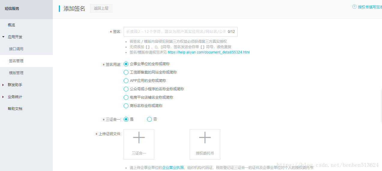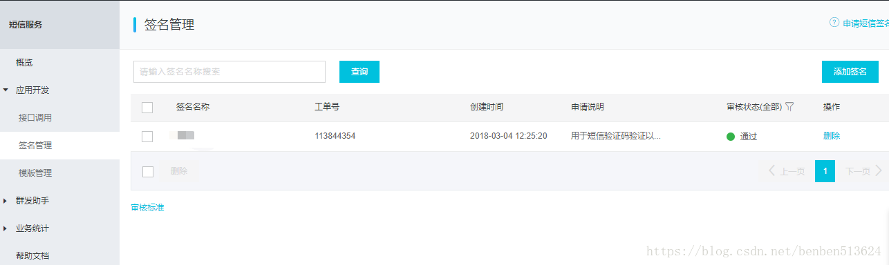 点击签名管理,设置签名,点击添加签名