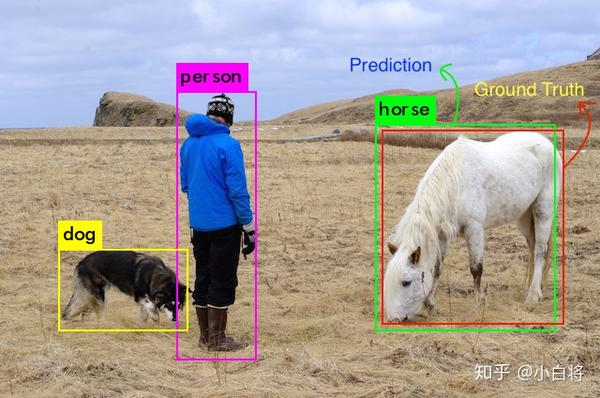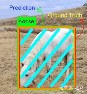 对于每个类,预测框和ground truth重叠的区域是交集,而横跨的总区域就是并集。其中horse类的交集和并集如下图所示(这个例子交集比较大):