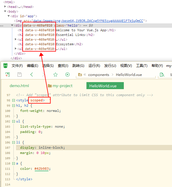 加上scoped后编译如下