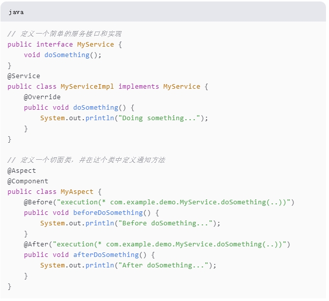 概念来实现。以下是在Spring框架中使用AOP的一个示例: