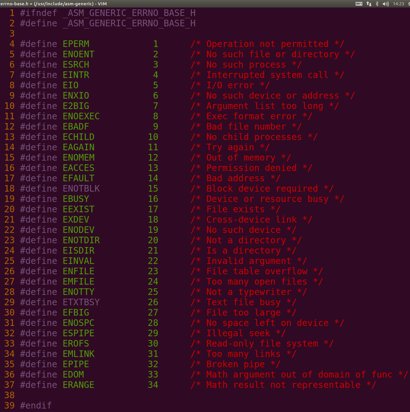 errno中存储了最近依次系统调用的错误编号 - 头文件