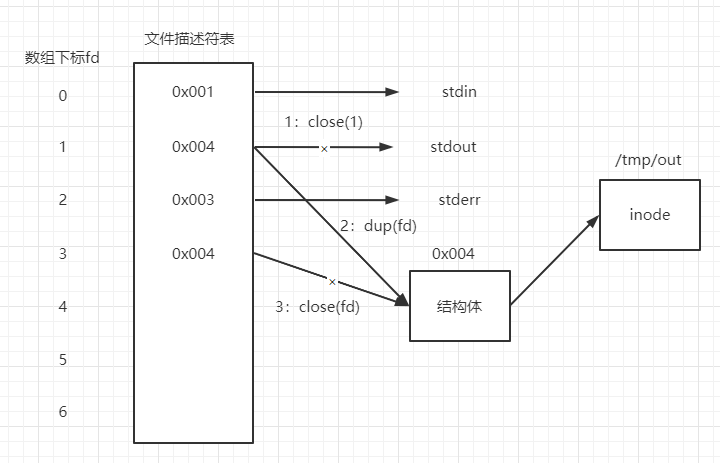 close时,就将对应fd下标的数组空间清除掉,并清除该地址指向的结构体; - 结构体中有一个成员用于记录引用计数,例如图中,将5号位置的
