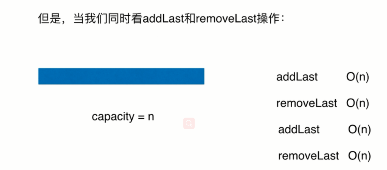 假设当前capacity=n,n+1次addLast,出发了resize,总共进行了2n+1次基本操作
