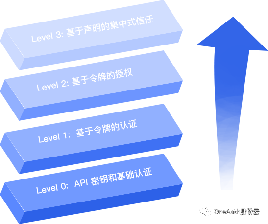 为了更好的描述身份与API安全之间的关系,我们参考API的成熟度模型,将API安全的模型划分为4个等级。