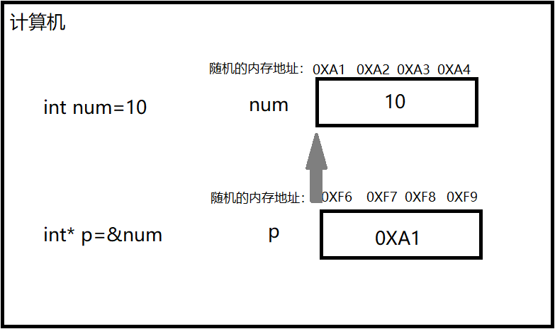 3、也就是说指针也是一种数据类型,所以指针也有自己的内存编号,而它存储的是地址(内存编号)