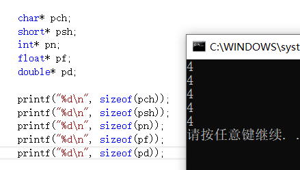 1、所有的指针,不论类型,在内存中都占4个字节的内存.