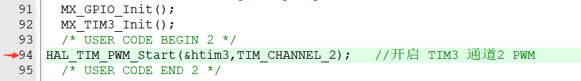 2. mian.c 中 开启TIM3 通道2 的PWM