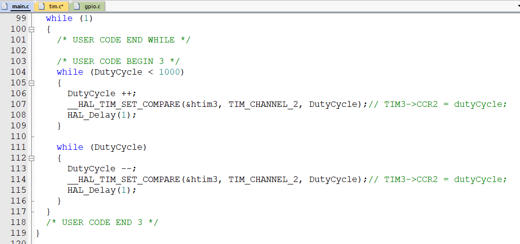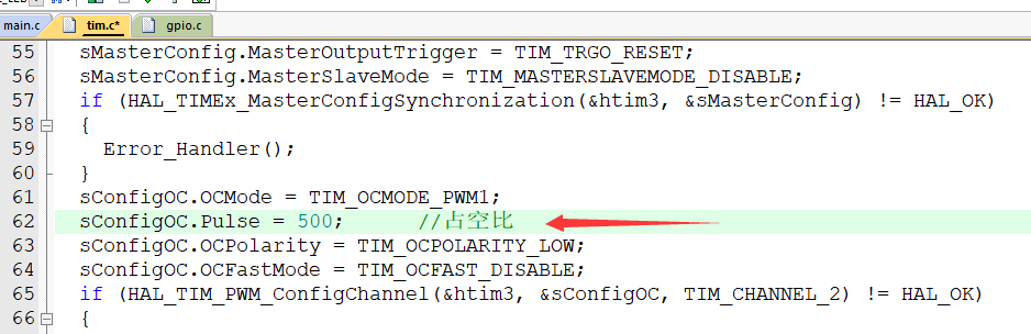 3.main.c 中 定义 占空比 ,想修改占空比 就修改这个值