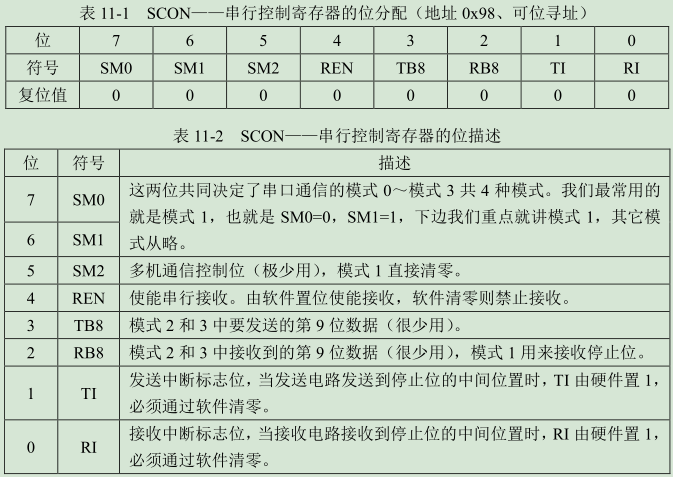 - 配置定时器 T1 为模式 2,即自动重装模式 (配置T1为 8位重装载 模式 -> 产生波特率用 )(TMOD = 0x20) //0010 0000