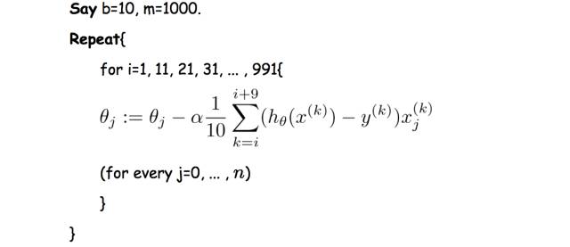 MBGD在每次更新参数时使用b个样本(b一般为10),其具体的伪代码形式为: