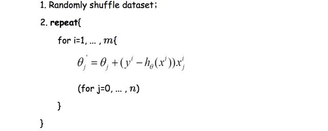 随机梯度下降是通过每个样本来迭代更新一次,如果样本量很大的情况(例如几十万),那么可能只用其中几万条或者几千条的样本,就已经将theta迭代到最优解了,对比上面的批量梯度下降,迭代一次需要用到十几万训练样本,一次迭代不可能最优,如果迭代10次的话就需要遍历训练样本10次。