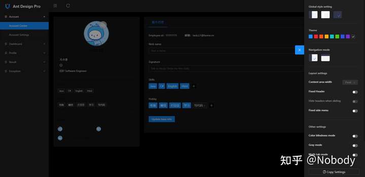 - 布局没有采用新版pro-layout插件,因为二次封装不利于个性化定制,而且pro-layout全是用jsx写的,所以还是使用了ant-pro 2.0的代码去修改