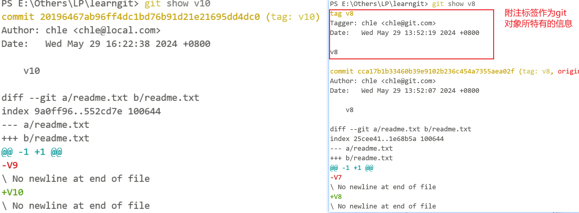 # 查看tag信息,含附注的标签是独立的对象,查看时可以看到标签的提交者、创建人等信息,比如如下信息,而轻量标签则不具备这些信息