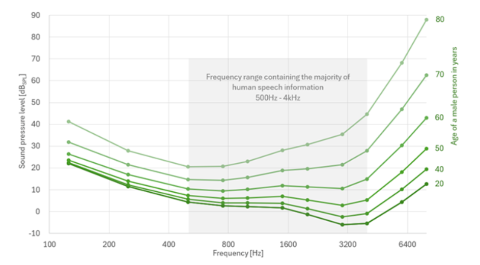 我们大多数人都知道,人类的听力阈值会随着年龄的增长而下降,如图2所示。
