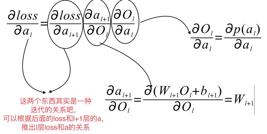 第l层的loss与a(l)的关系,实现了复用,不用重新迭代计算。