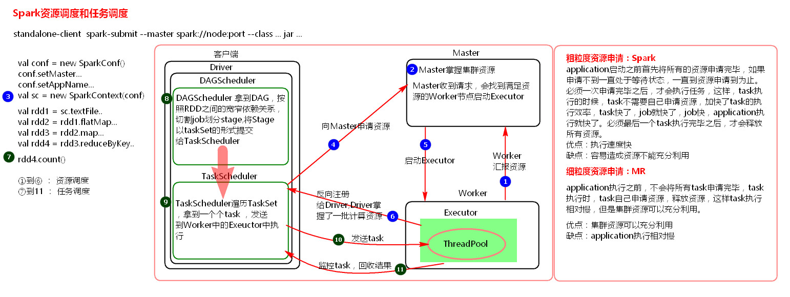 这里重点还是总结一下Standalone模式和yarn模式的资源调度和任务调度