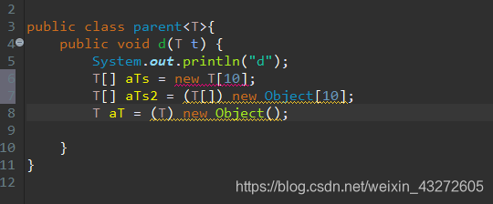 这里要说的就是这个代码片段呢,它看起来没啥错误,将边界限制在了parent以下,也就是说不用达到Object那种高度,我们通过这个泛型的表面对象使用上边界parent的里面所有方法。就像之前的限制在了Object一样了。