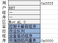 - 控制卡解释程序: 对于监控程序来说,他必须知道当前是那个程序在运行,这就需要每个程序能唯一的标识自己,所以需要在作业程序中加入一段控制卡代码,来唯一标识自己。所以监控程序也需要一个控制卡解释程序来识别这些标识。