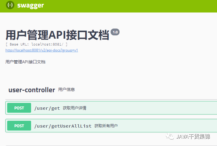 5、到此Swagger的配置基本完成,启动Springboot的服务,访问Swagger内置的web页面,可以看到我们暴漏的所有API和调用方式,访问地址:http://localhost:8081/swagger-ui.html