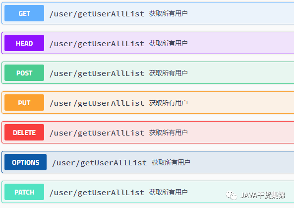 4、声明Controller,暴漏API接口,如果一个接口没有声明明确的调用方式(POST或GET)method = RequestMethod.POST,Swagger默认会把所有的调用方式都列出来。