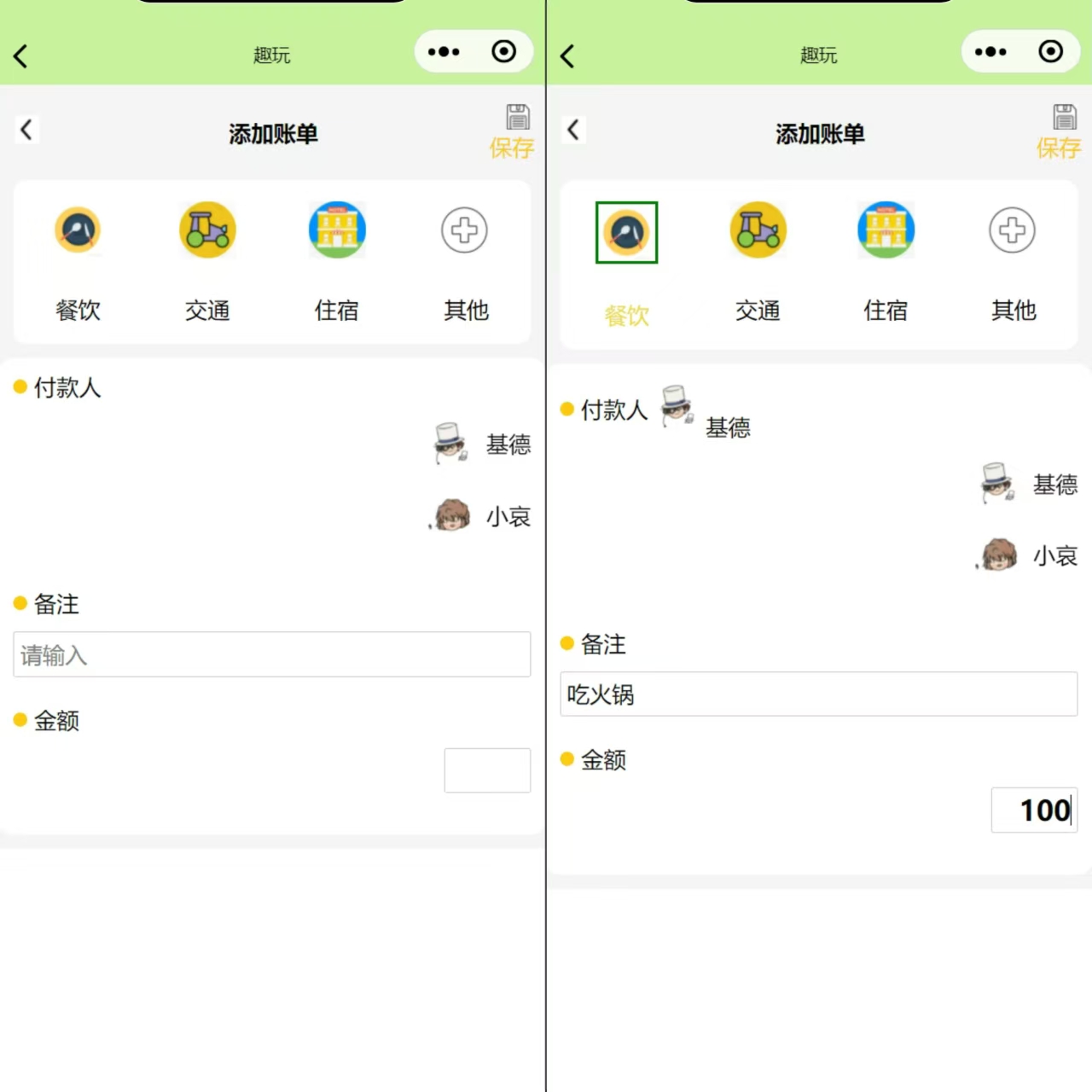 | 周晓燕 | 足迹,账单和创建账单页面的前端代码静态页面;我的和修改个人信息页面的ui设计与后端代码的实现;游记进行中和游记已结束页面的具体游记显示功能,点击游记跳转功能,搜索游记功能的实现;与朱家蓉负责合作组全部ui的重新设计。 |
