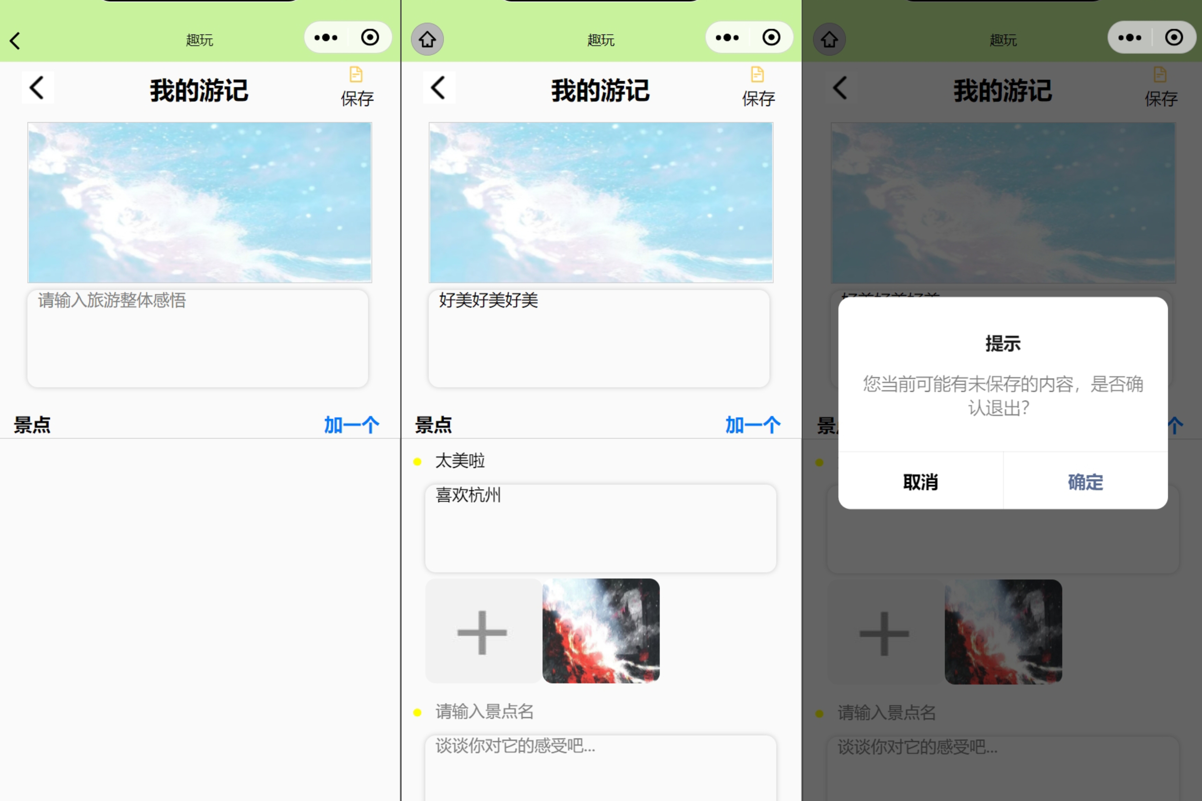 点击右上角【保存】按钮,可以保存行程计划并跳转到游记-进行中页面