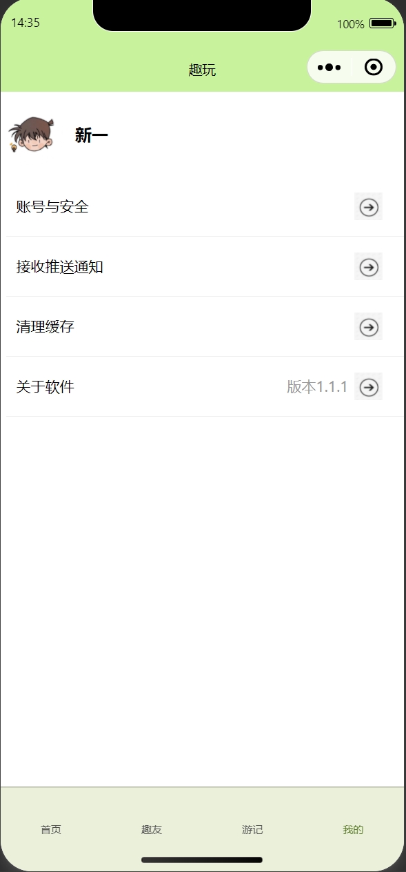 底部为导航栏,对应首页,趣友,游记,我的四个界面